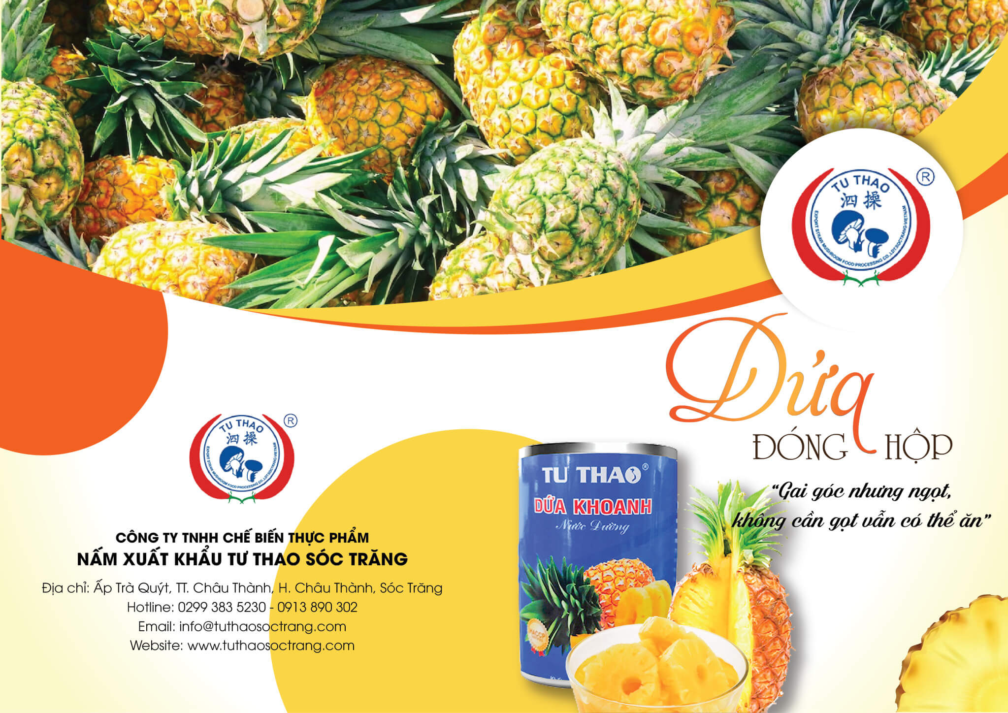 Dứa miếng ngâm trong nước đường được tuyển chọn từ những quả dứa Queen thơm, ngọt sắc chín đúng độ, dứa được gọt sạch, cắt mắt, cắt khoanh đều, ngâm trong nước đường, ghép mí và được thanh trùng để diệt các loại vi khuẩn và không sử dụng chất bảo quản.